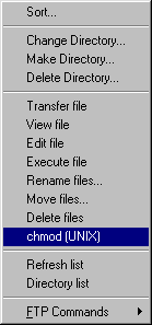 1. Download an FTP software like CuteFTP or WS_FTP. 2. Log into your account and go to the directory where the files are located. 3. Highlight the file or directory that you want to change permission. 4. Locate the "file permission" or "chmod" command on your FTP software software (you may need to refer to the manual or help file)