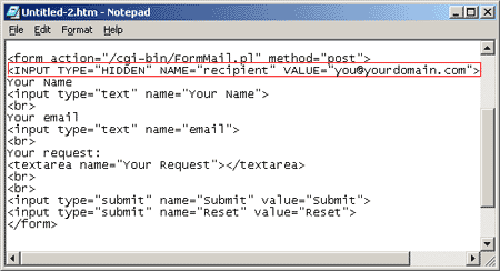 Example: <form action="/cgi-bin/FormMail.cgi">